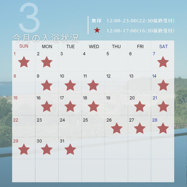 3月の日帰り入浴営業時間のお知らせ (2026/03/01) |